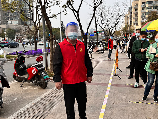 近日,揚(yáng)州新冠疫情態(tài)勢嚴(yán)峻,一線防疫壓力持續(xù)增大,人員力量緊缺?;▓@抗疫志愿者立即行動(dòng),奔赴抗疫一線,協(xié)助文匯街道開展核酸檢測等疫情防控工作。