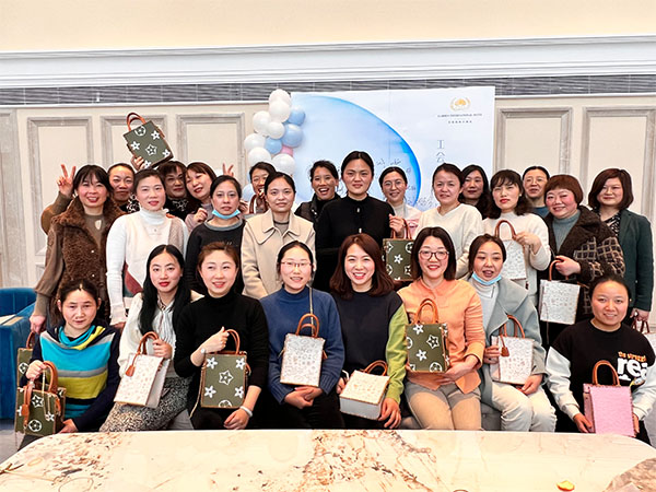 初春,為慶祝第112個“三八國際婦女節(jié)”的到來,花園國際大酒店工會為酒店女職工們定制了一場“巧手匠心”手工包制作活動。