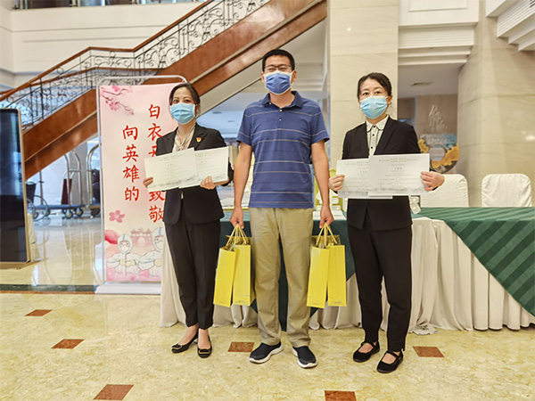 由于客房人手不足,下一批來(lái)?yè)P(yáng)支援的醫(yī)護(hù)人員即將到來(lái)需要入住房間,需要給即將到來(lái)的醫(yī)護(hù)人員做準(zhǔn)備工作,我們?cè)趰徣藛T不分部門、不分崗位,樓上樓下的去整理房間,換下床單被套,汗水也濕透了我們的工作服。有一次我結(jié)束工作已經(jīng)睡覺(jué)了,大概在半夜兩點(diǎn)多,接到電話通知我們要接待臨時(shí)來(lái)的醫(yī)護(hù)工作者,我立刻爬起來(lái)趕到工作崗位,這一刻,大家都擰成一股繩,齊心協(xié)力做好工作,沒(méi)有任何的抱怨。這一刻,我深知團(tuán)隊(duì)的力量在任何時(shí)候都能發(fā)揮著強(qiáng)大的力量,這段經(jīng)歷也深深影響者我后來(lái)的工作,拼搏、忘我、團(tuán)結(jié)、奮進(jìn),我想這也是我這段時(shí)間的收獲吧。